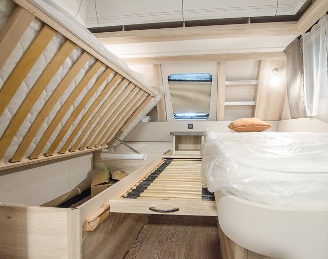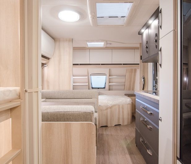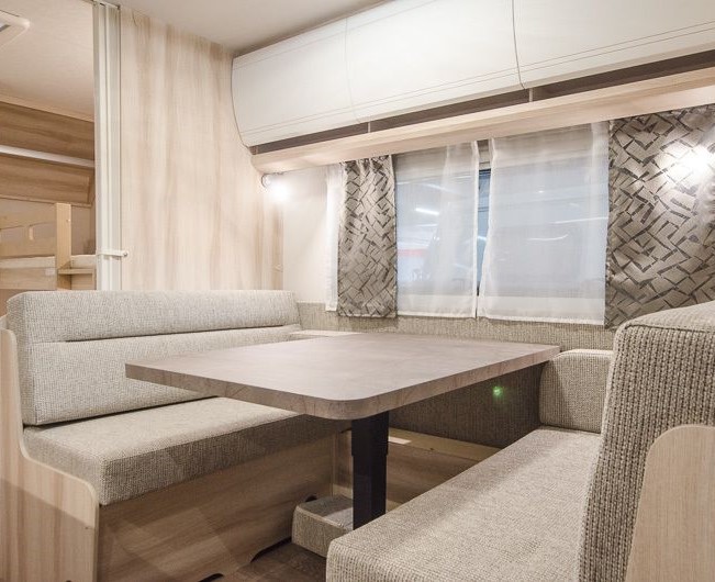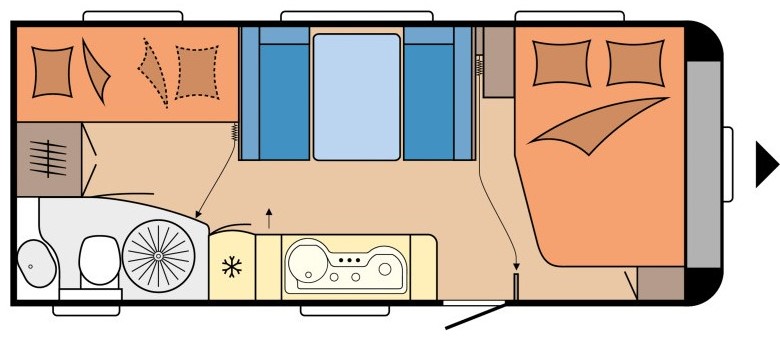TIPOLOGIA: DINETTE CENTRALE (CARAVAN), LETTI A CASTELLO SINGOLI LATERALI, LETTO MATRIMONIALE ALLA FRANCESE TRASVERSALE